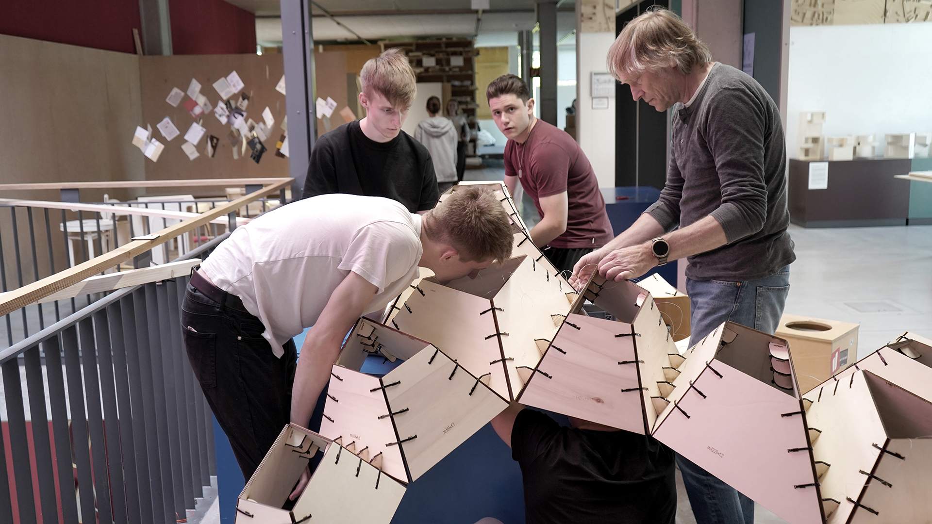 Die CNC-Technologien Lasern und Fräsen sind unser Ausgangspunkt, um digitale Konstruktionen und Verbindungen für den spielerischen Entwurf räumlicher Strukturen anzuwenden.